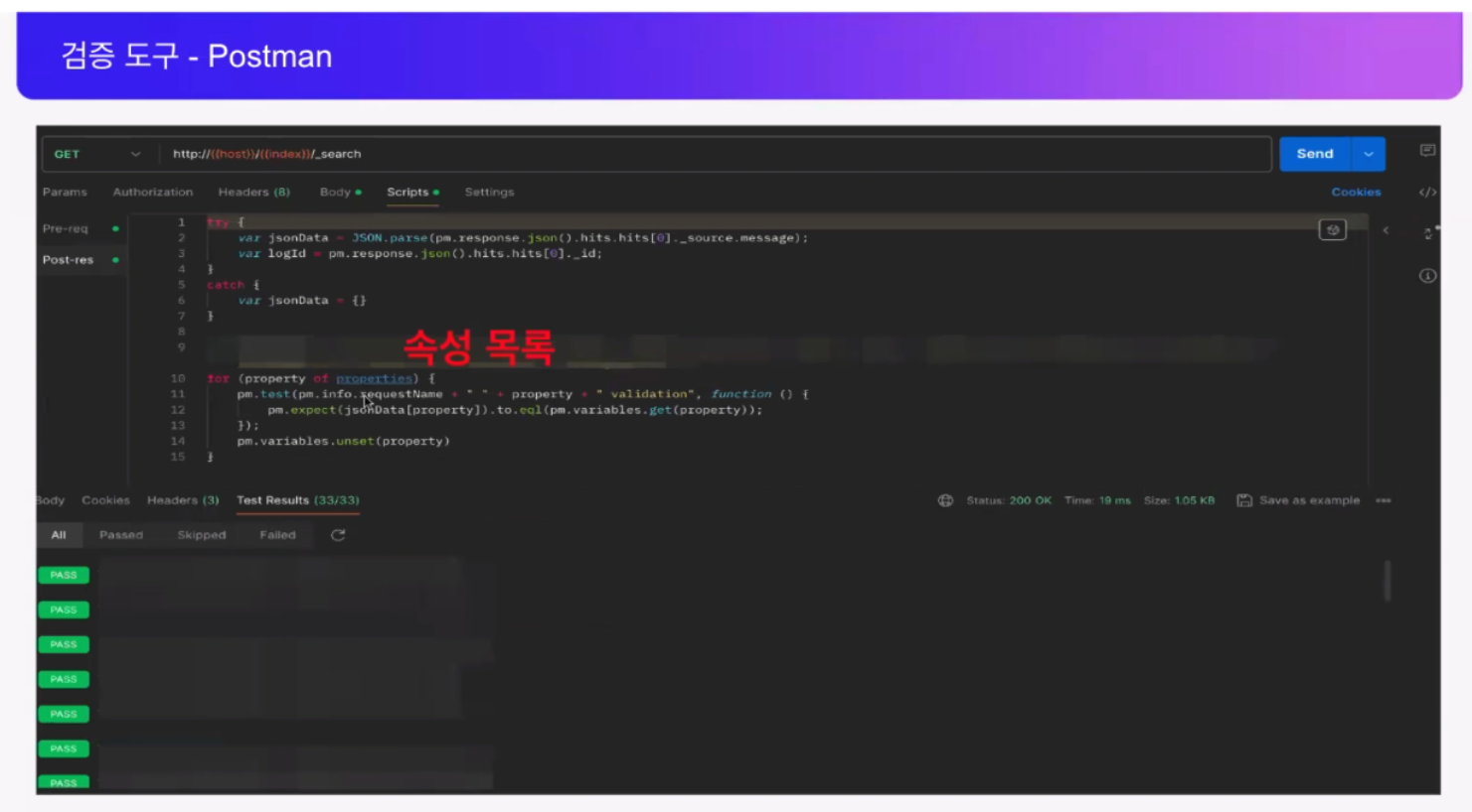 Postman을 사용해서 테스트에 필요한 스크립트를 작성하여 TC로 활용하고 있다고 하네요. Elasticsearch와 Postman을 잘 활용하여 API 테스트처럼 사용하고 있다는 것을 볼 수 있었습니다. Postman으로 API 테스트를 많이 사용한다고 알고 있었는데 직접 현업에서 사용하는 사례에 대한 설명은 처음 봤네요! 우리 회사도 Postman으로 API 테스트를 한다면 좀 더 시각적이지 않을까 라는 생각이 드는 시간이었습니다 🙄