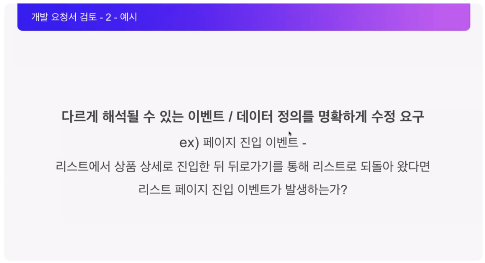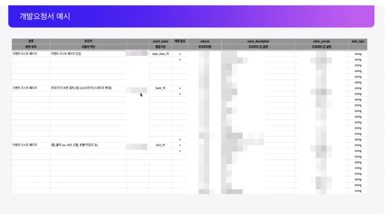 그리고 이번 발표를 통해 처음 알게 된 "개발요청서"라는 문서를 검토하는 작업이 QA 프로세스 중 하나라고 하는데요, 개발요청서는 각 화면의 이벤트들이 어떤 동작을 수행하고, 전달하는 프로퍼티에 대한 내용까지 정리된 문서라고 합니다. 이런 방식으로 명확하게 개발 문서를 관리하여 기획 의도에 맞는 개발을 하고 있다는 것을 증명할 수 있고 기획-개발-QA가 서로 어떤 시스템이 만들어지고 있구나를 파악할 수 있는 문서라고 합니다.