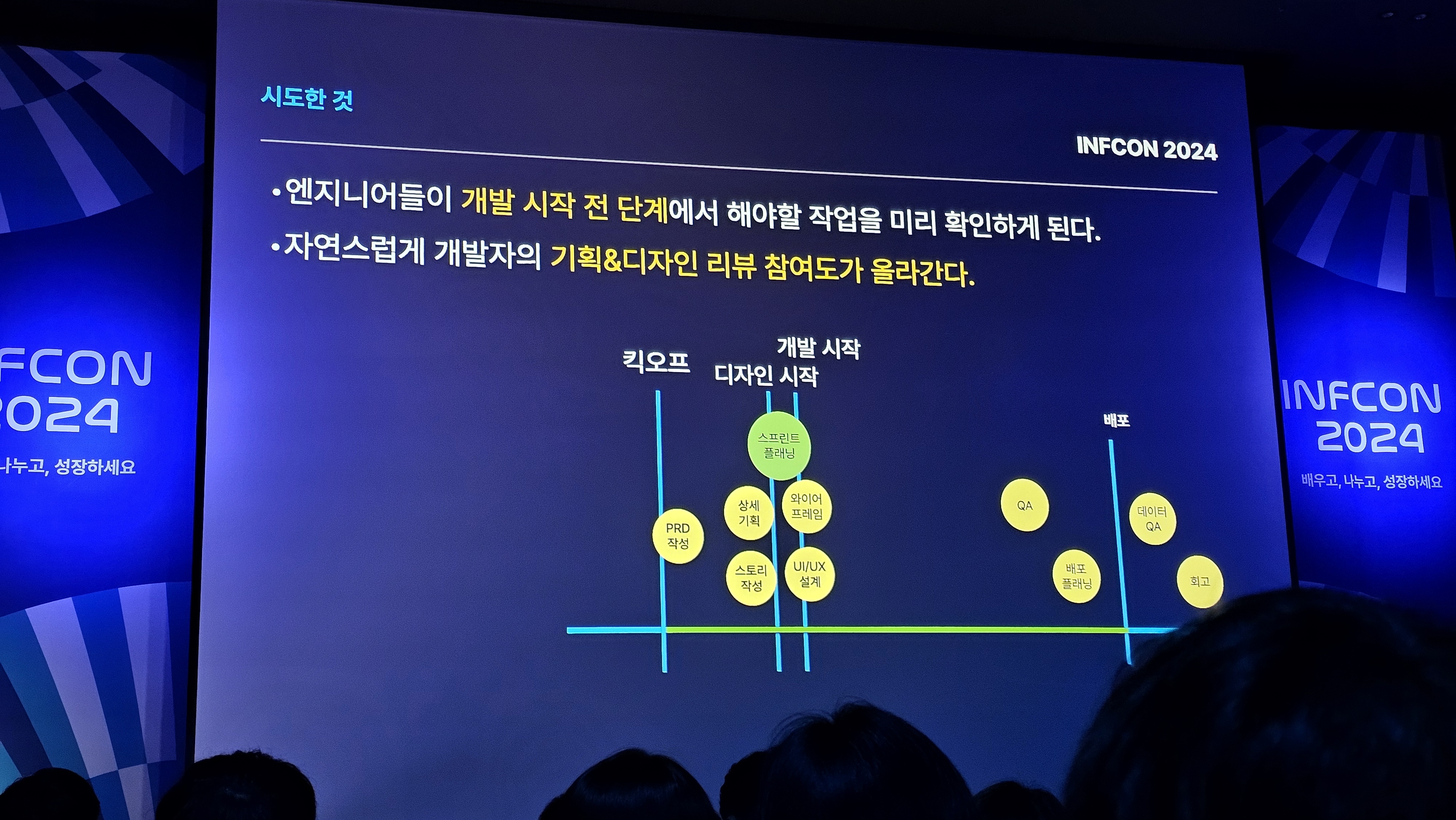 인프콘 발표중에 가장 재밌게 들었던 발표였다고 생각합니다. 기획자의 시선에서 개발자와 협업하는 내용, 쉽지 않은 의사 결정, 커뮤니케이션 과정에 대해 설명해주셨습니다. 사내 기획자분과 같이 들었는데 너무 감정 이입하면서 공감하셔서 더 재밌게 들었던 것 같습니다 🤣