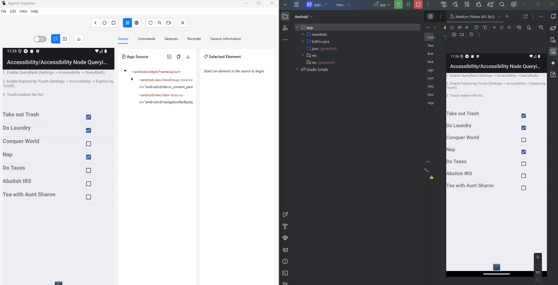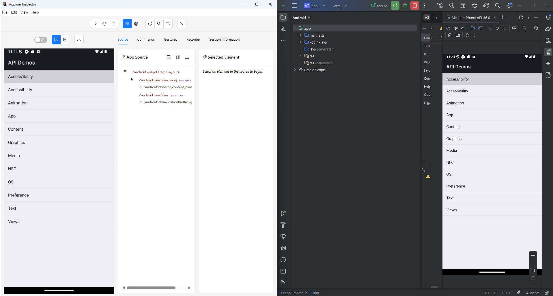 위 항목을 설치하고 Appium과 Android Studio에서 구성한 에뮬레이터를 연결하고, Appium Inspector로 대상 요소를 확인하는 과정에 대해 설명해 보겠습니다.