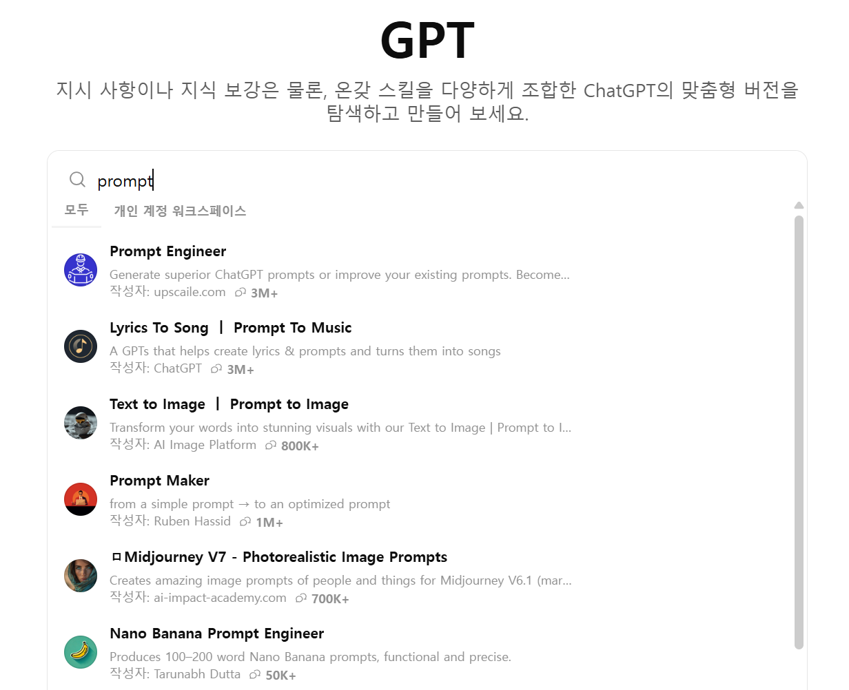 GPT는 맞춤형 GPT를 활용해서 특정 기술에 특화된 GPT와 대화하며 정보를 알아오는 방식을 사용할 수 있습니다.