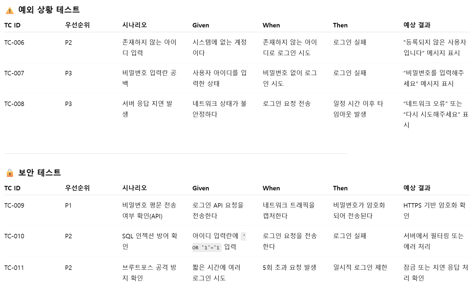 로그인 테스트 케이스를 다음 조건으로 작성해 줘: